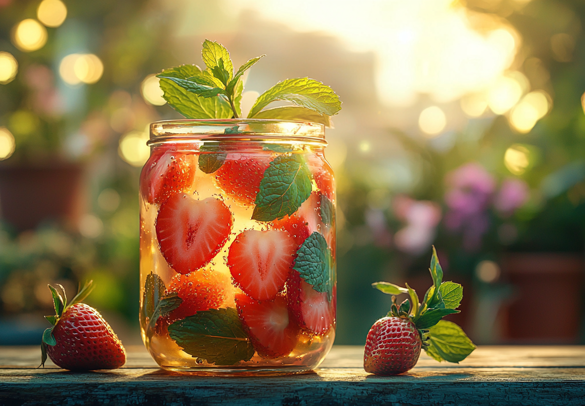 Секрет успеха — дать компоту настояться хотя бы месяц. За это время вкусы полностью раскроются: клубника подарит насыщенную сладость, а мята — тот самый освежающий холодок.