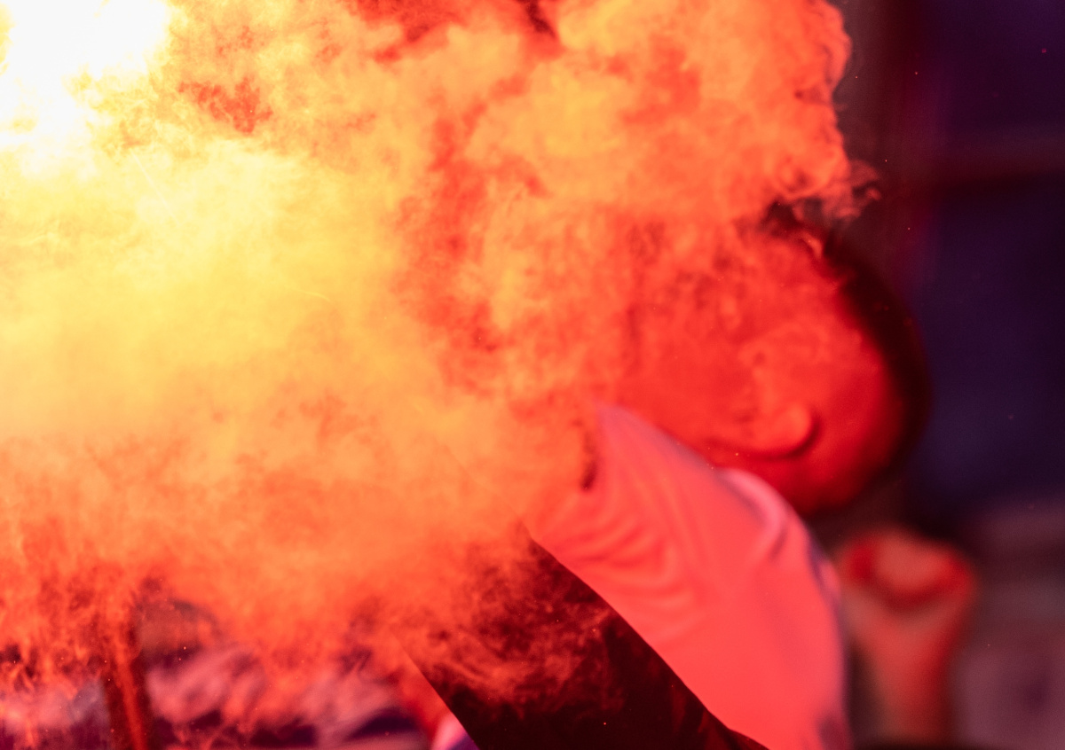 Как писал NEWS.ru, вечером 3 января около 10 молодых людей вытеснили автомобили с начала проспекта Бакунина в Петербурге и прошлись по проезжей части, взрывая дымовые шашки и поджигая фаеры.