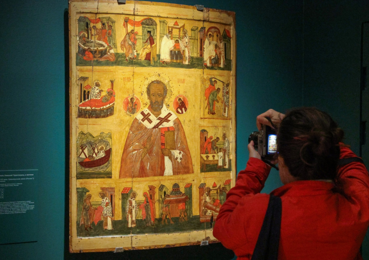 Икона на выставке «Святитель Николай Чудотворец. Иконы XIII–XX веков» в Инженерном корпусе Третьяковской галереи Икона на выставке «Святитель Николай Чудотворец. Иконы XIII–XX веков» в Инженерном корпусе Третьяковской галереи Фото: Сергей Булкин/NEWS.ru