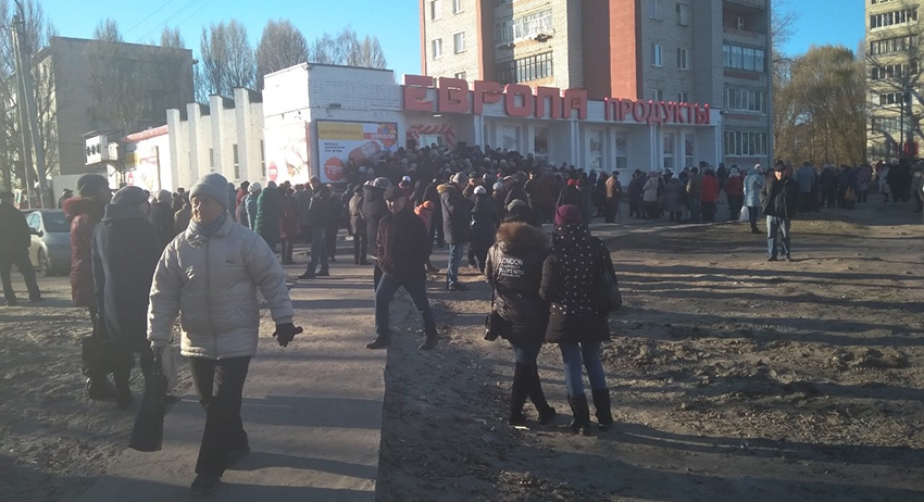 Жители Брянска устроили давку из-за дешевых продуктов. Инцидент произошел в Володарском районе города на открытии магазина «Европа».
