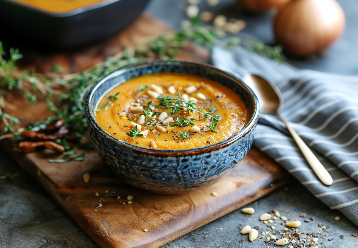 Суп-пюре из моркови с кедровыми орешками