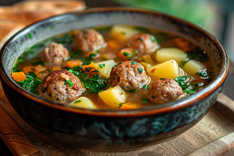 Получается обалденная вкуснятина: наваристый бульон с нежными фрикадельками, мягким картофелем, ароматными грибами и рассыпчатым булгуром, который придает блюду сытость и неповторимый колорит. Такой суп хочется есть ложкой, не останавливаясь, и просить добавки снова и снова.