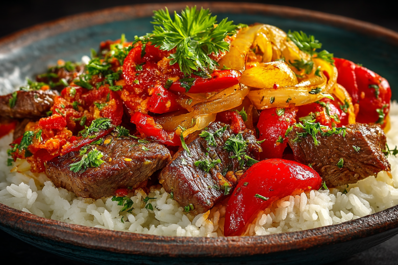 Специи здесь — все. Паприка, черный перец, чуть-чуть сахара для баланса. Они не перебивают вкус мяса, а только подчеркивают его, делают блюдо глубоким, насыщенным. Добавляю специи, когда мясо уже обжарено, вместе с овощами — так они лучше раскрываются.