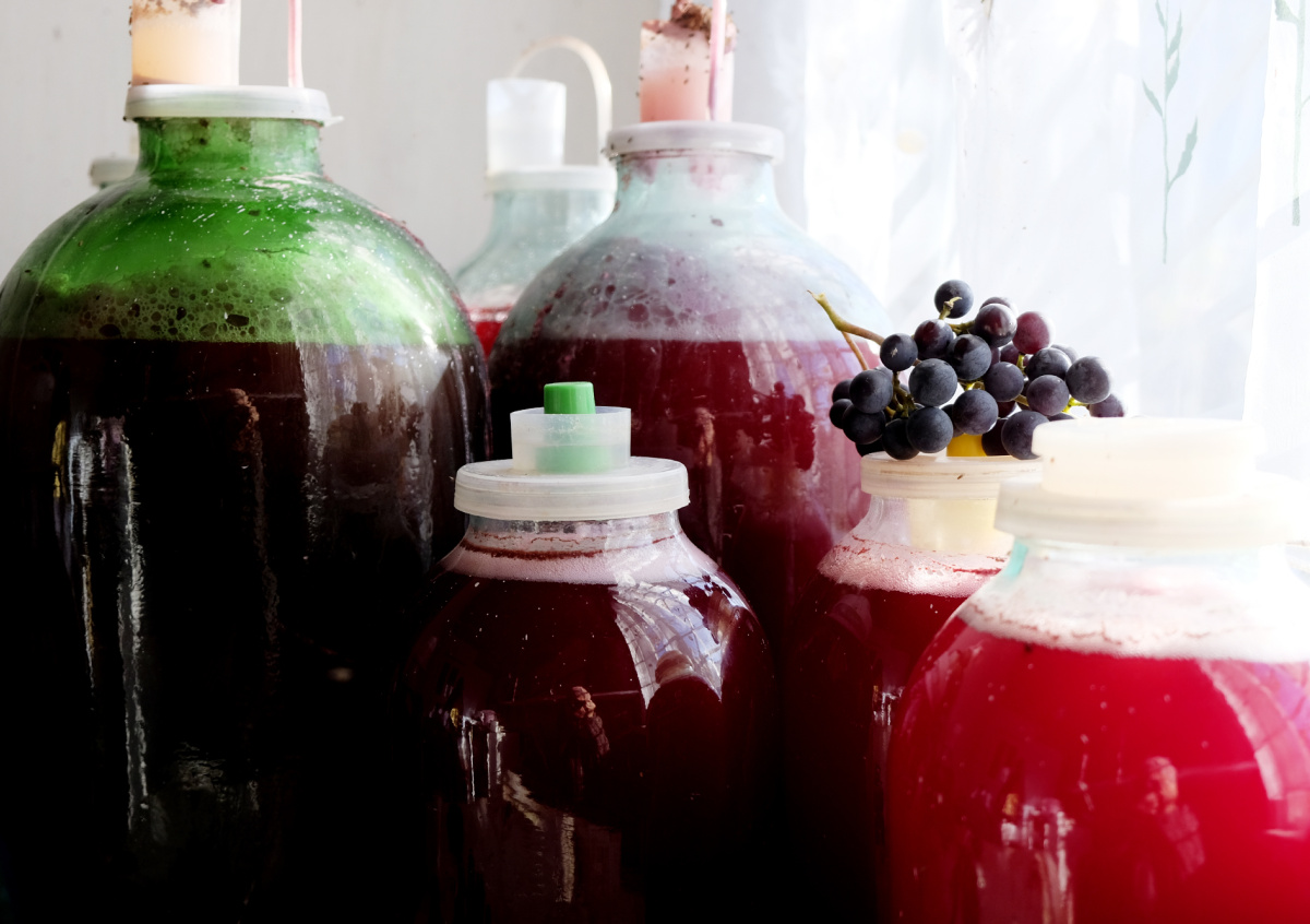 Накройте ваш тазик или ведро с виноградом чистой тряпочкой или марлей и оставьте в теплом месте на 3–5 дней для начала брожения. Ежедневно перемешивайте содержимое, чтобы предотвратить образование плесени. Спустя 1-2 дня вы заметите, что сусло начинает пениться и шипеть — это сигнал о начале брожения.