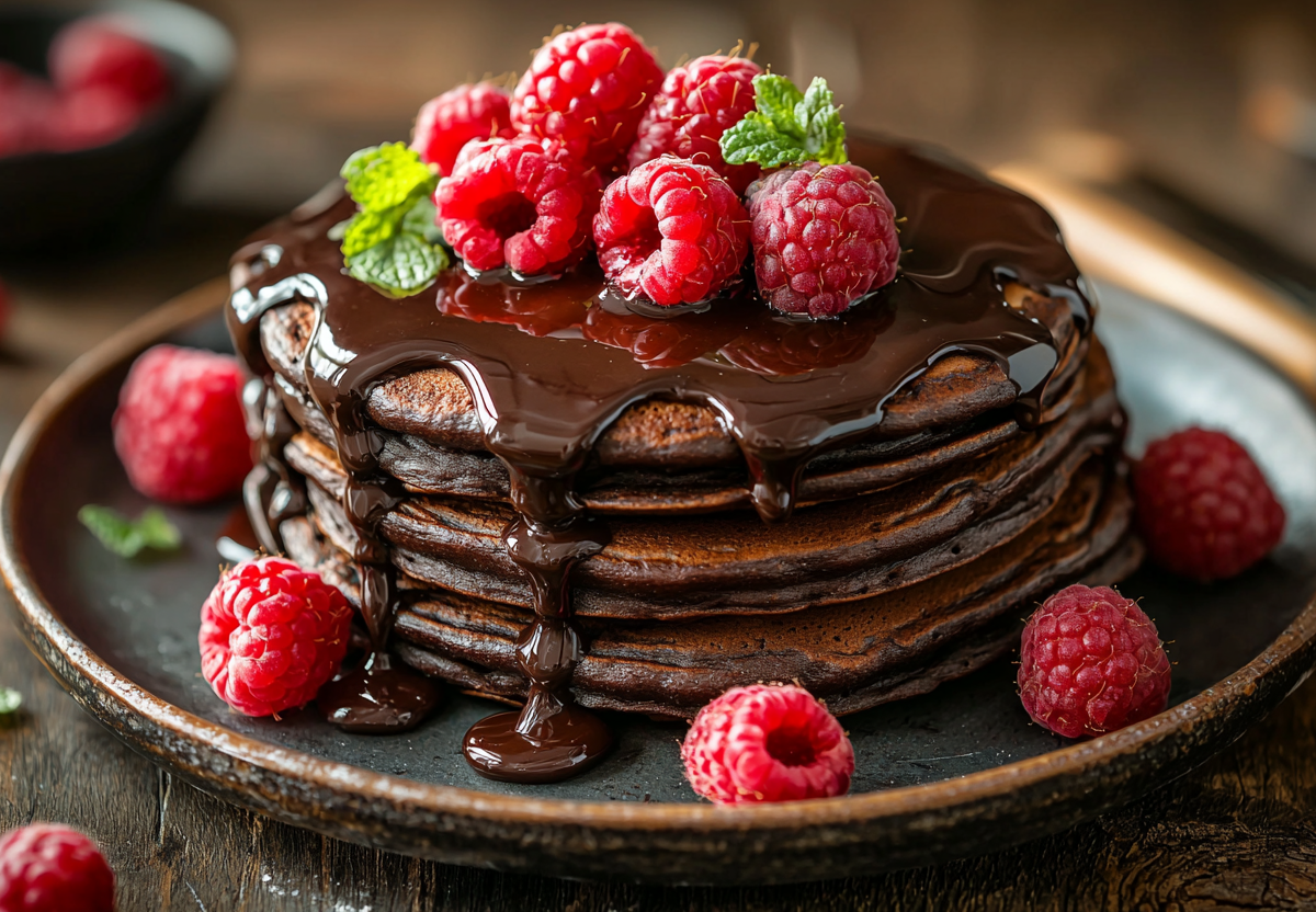 Начните день с маленького праздника! Эти шоколадные панкейки — не просто завтрак, а настоящее теплое, уютное лакомство. Они получаются невероятно воздушными и пышными благодаря правильному тесту, а насыщенный вкус какао делает их похожими на маленькие шоколадные тортики. А теплая, шелковистая глазурь из сливок и шоколада превращает простую трапезу в момент чистого наслаждения.