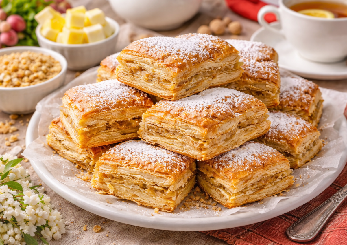 Эти слойки исчезают со стола быстрее, чем остывают. Хрустящие снаружи, нежные внутри и с ароматной сладкой крошкой — они легко заменят магазинную выпечку. Главное преимущество — натуральное сливочное масло и никакого маргарина. Получается рассыпчатое слоеное тесто на кефире с мягкой текстурой и румяной корочкой. Штрейзель создает аппетитные сладкие прослойки, благодаря которым слойки получаются воздушными и многослойными.