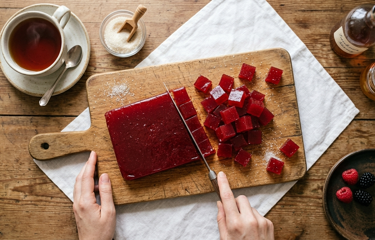 Дайте остыть, затем уберите в холодильник на 1–2 часа до полного застывания. Готовый пласт аккуратно выньте и нарежьте на кубики.