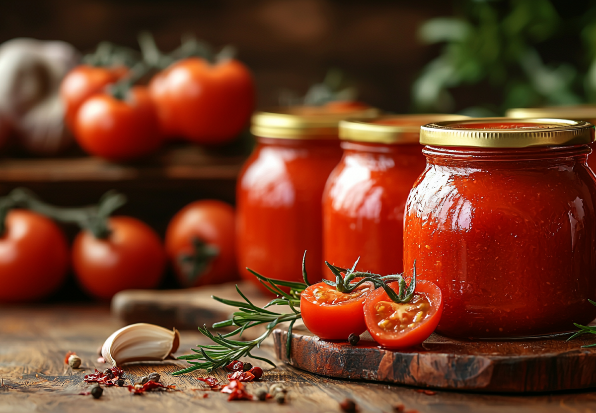 Домашняя томатная паста — это соус с насыщенной сладостью спелых помидоров и легкой кислинкой. Густая, ароматная и ярко-красная, она идеальна для супов, соусов и пиццы.