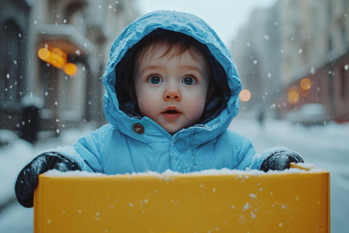 На видео один из курьеров паркует электровелосипед на стоянке у новогодних украшений. Дело происходит у велопарковки на входе в ТЦ «Выходной». Из желтой термосумки известной компании, стоящей в багажнике электровела, он извлекает маленького ребенка в голубом комбинезоне и аккуратно ставит на землю.