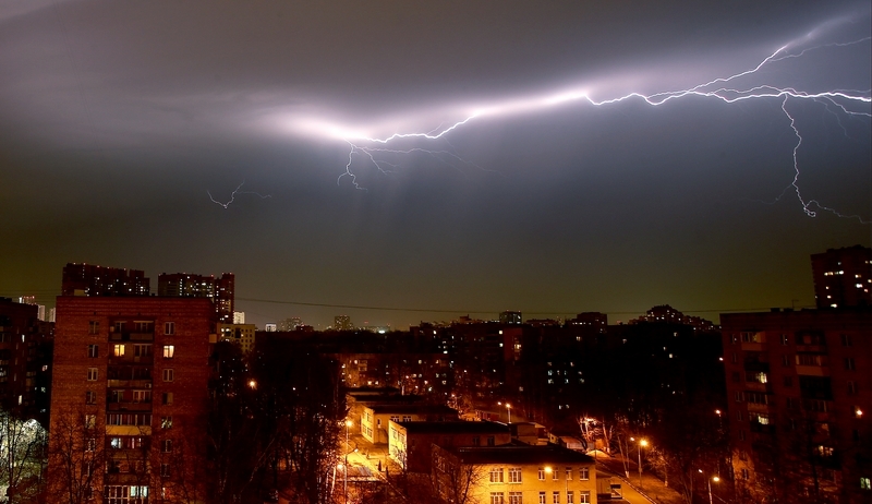Дождь и гроза начались на юге столицы, как и предупреждали Гидрометцентр и МЧС. К полуночи непогода дошла до центра Москвы, ближайшие два часа в столице ожидаются сильный дождь с грозой и молниями.