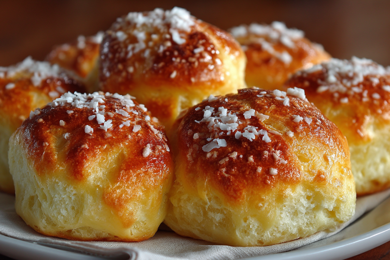 Получается обалденная вкуснятина: румяные, пышные булочки с нежной, чуть влажной текстурой, ароматом ванили и кокоса, которые тают во рту, оставляя приятное сливочное послевкусие.