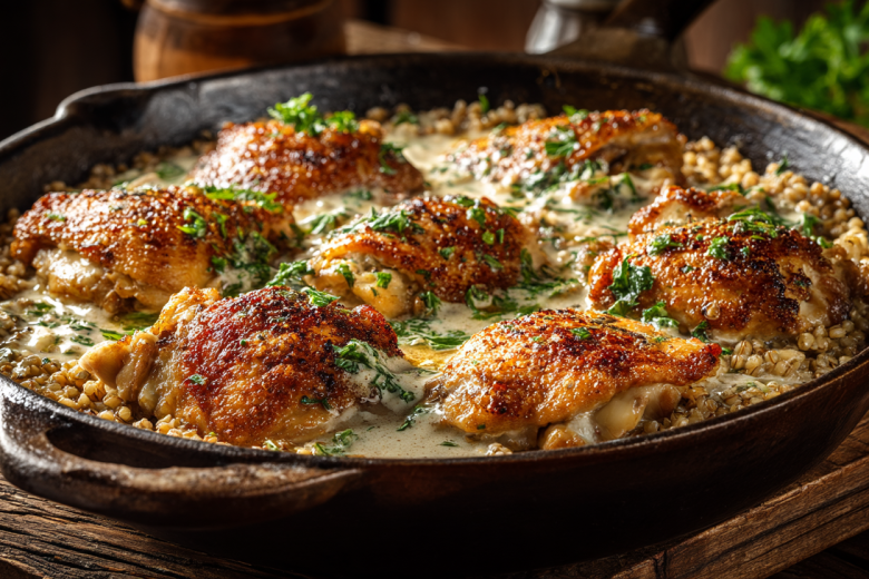 Финальный штрих — мой сметанный соус с чесноком: заливаю им почти готовую крупу, накрываю крышкой и томлю 10 минут. Получается невероятно сочно и ароматно.