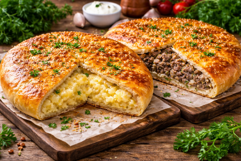 Готовим два пирога к Рождеству. Если хочется по-настоящему сытной домашней выпечки к празднику, эти пироги — идеальный вариант. Тесто получается мягким и воздушным, а начинки — щедрые, сочные и очень ароматные. Удобно, что из одного теста сразу готовятся два разных пирога — можно угодить всем за одним столом.