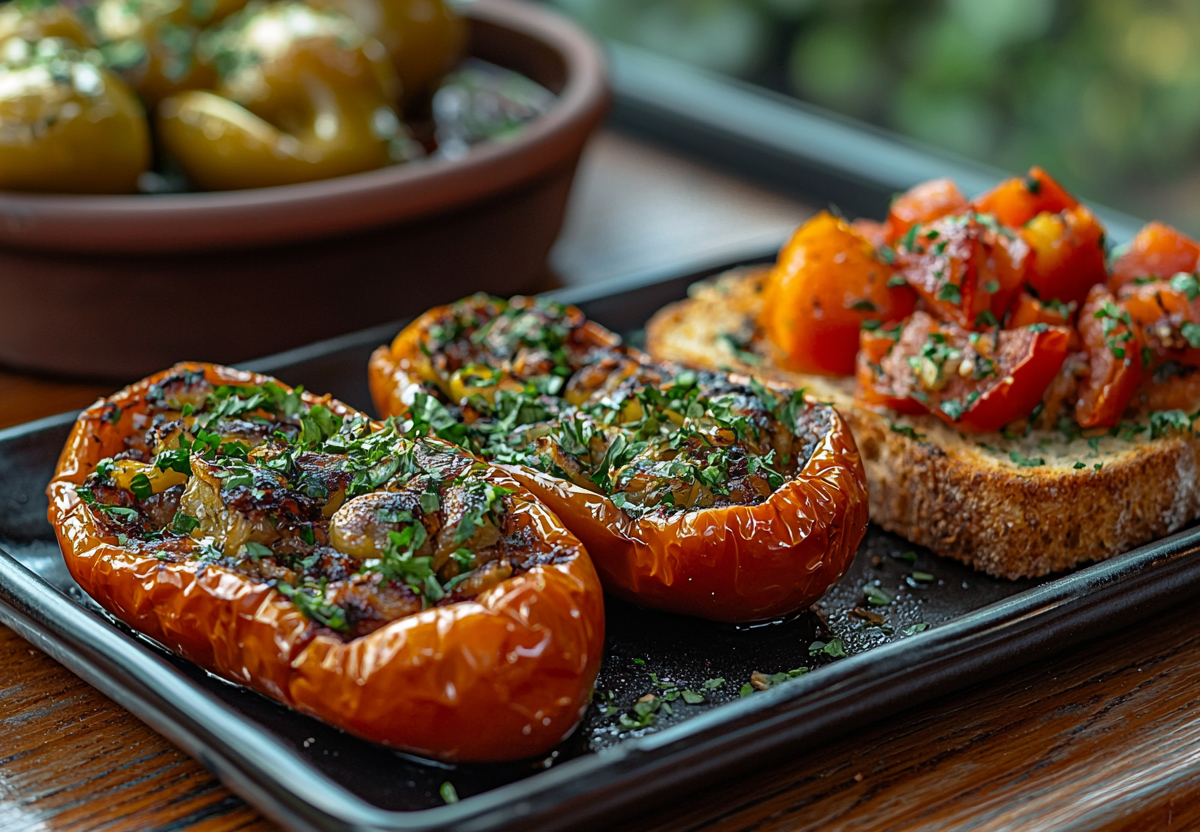 Эти две простейшие закуски из Испании покорят вас! Хватаем бокал белого, а также перцы и помидоры и устраиваем вечер с испанским колоритом. В Каталонии их подают в любом кафе с хамоном или анчоусами. А перцы идеально сочетаются с бокалом белого вина или хереса.