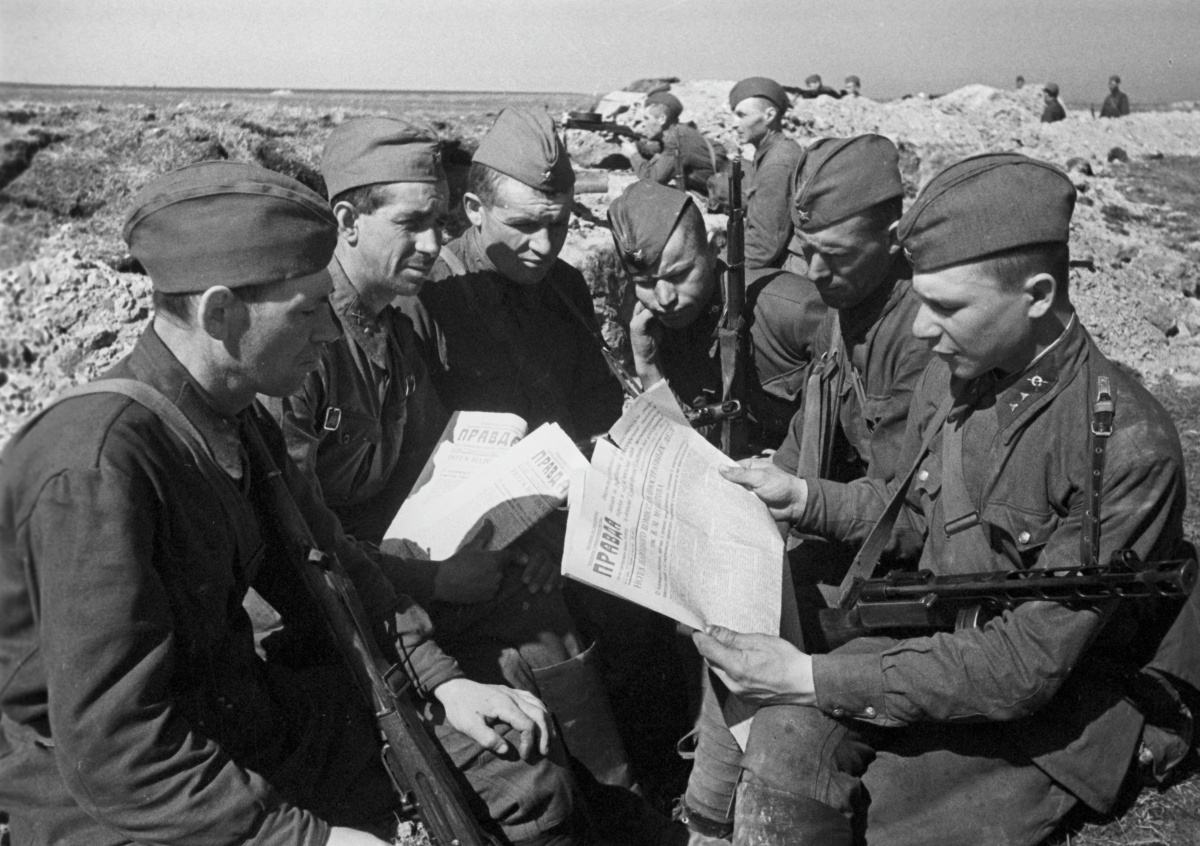 Бойцы Красной армии в окопах с газетой «Правда» Бойцы Красной армии в окопах с газетой «Правда» Фото: Борис Кудояров/РИА Новости