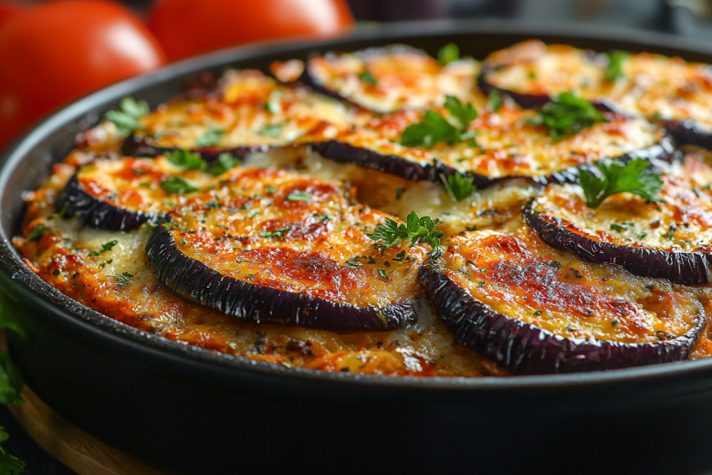 Для приготовления вам понадобится: 2 крупных баклажана, 500 г мясного фарша, 1 луковица, 2 помидора, 2 зубчика чеснока, 100 г твердого сыра, 3 ст. л. оливкового масла, соль, перец, 1 ч. л. паприки и пучок петрушки. Баклажаны нарежьте кружками толщиной 1 см, посолите и оставьте на 20 минут, чтобы ушла горечь. Затем промойте и обжарьте с двух сторон до золотистого цвета. Лук и чеснок мелко нарежьте, обжарьте до мягкости, добавьте фарш и готовьте до румяного цвета. Добавьте нарезанные кубиками помидоры, специи и тушите 10 минут. В форму для запекания выложите слоями: половину баклажанов, мясной фарш, оставшиеся баклажаны. Посыпьте тертым сыром и запекайте 25–30 минут при 180 °C до золотистой корочки. Перед подачей украсьте свежей петрушкой. Подавайте горячей с рисом или свежим хлебом. Эта запеканка хороша и на следующий день, когда вкусы еще лучше сочетаются друг с другом.