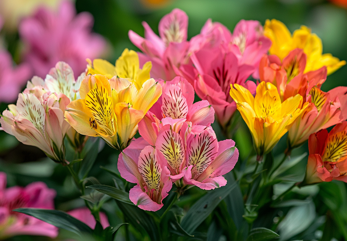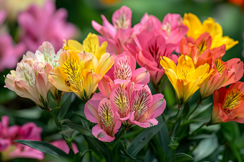 Альстромерия радует яркими, экзотическими цветами с начала лета и до самых заморозков, выпуская одну волну бутонов за другой. Ее цветки, напоминающие изящные орхидеи или лилии, поражают разнообразием оттенков — от солнечно-желтых и огненно-оранжевых до нежно-розовых, глубоких фиолетовых и белоснежных, часто с контрастными крапинками на лепестках.