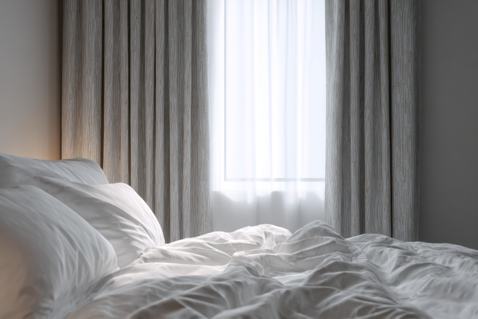 Отели тратят огромные бюджеты на климат-контроль и светоизоляцию. В идеальной спальне должно быть прохладно, тихо и абсолютно темно. Но даже если у вас нет возможности установить профессиональную систему кондиционирования, текстиль может взять на себя часть этих функций. Плотные шторы блэкаут — это обязательный элемент «отельного сна». Они не просто блокируют свет уличных фонарей, но и создают дополнительный звуковой барьер, поглощая шум мегаполиса.