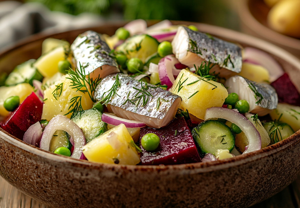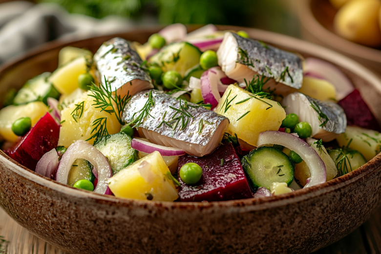 Эффектное блюдо за копейки: обалденный салат с селедкой и свеклой — польза омега-3 и овощей. Хотите разнообразить меню простым, но вкуснейшим блюдом? Приготовьте салат с селёдкой — он сочетает насыщенный вкус и пользу: омега‑3 из рыбы и клетчатку из овощей. Это отличный вариант и для будничного ужина, и для праздничного стола: готовится быстро, выглядит нарядно, а ингредиенты всегда под рукой. К тому же блюдо получается сытным, но не тяжёлым — идеальный баланс для семейного обеда.