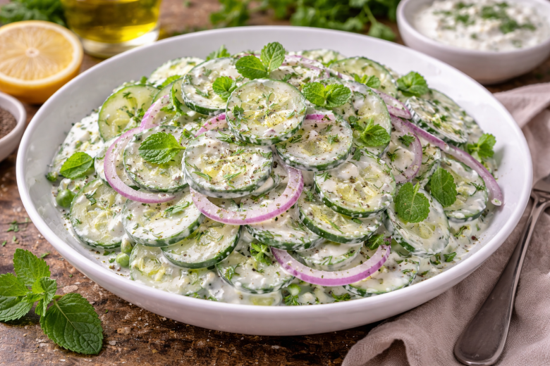 Этот турецкий огуречный салат — настоящая находка, когда хочется чего-то простого, но вкусного. Турецкий вариант отличается нежной йогуртовой заправкой, ароматом мяты и легкой кислинкой лимона — он идеально дополняет мясо, рыбу и любой обычный ужин.