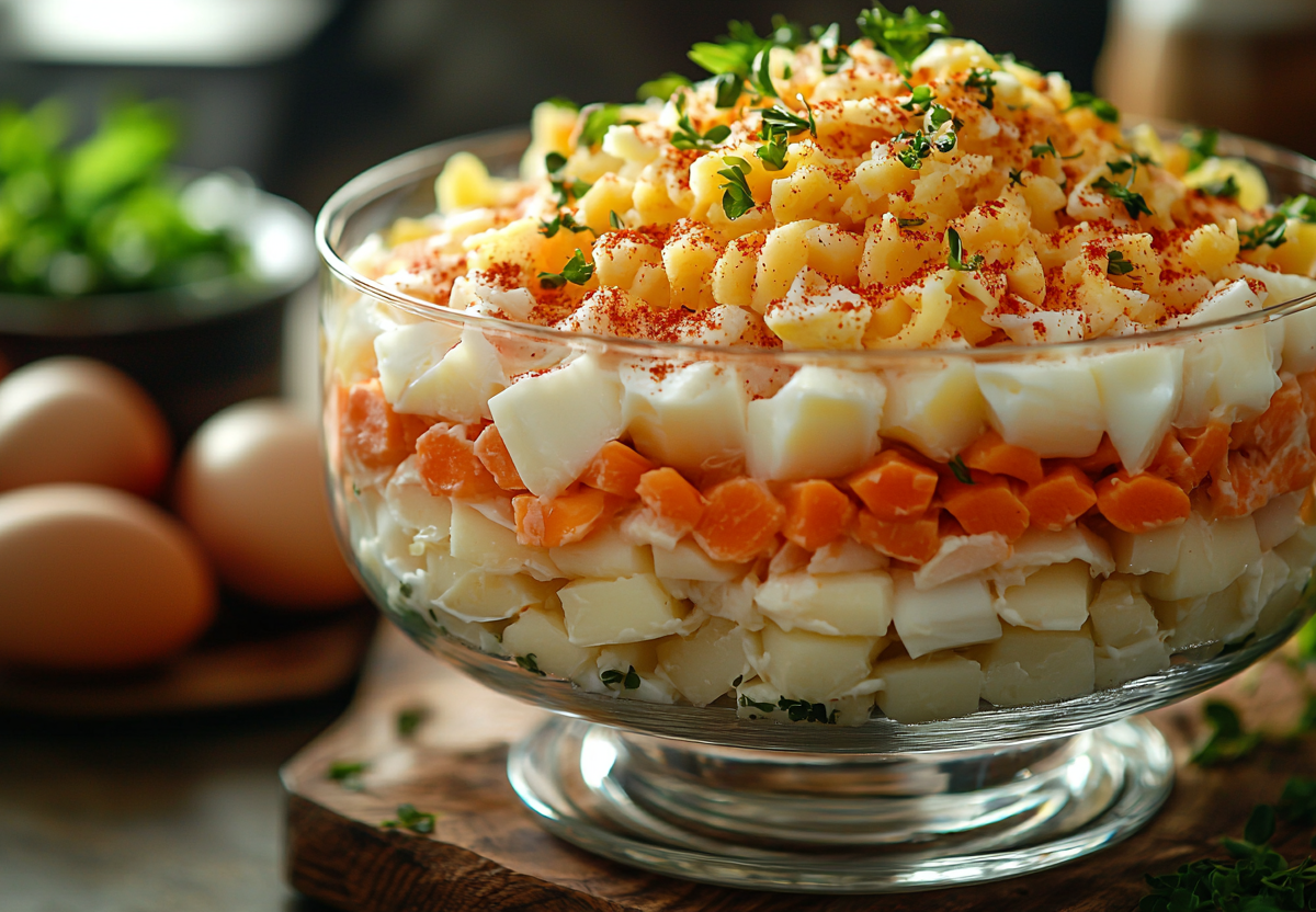 Кальмары привносят в салат не просто «рыбный» вкус, а целый спектр морских оттенков — от сладковатых до минеральных. Этот насыщенный букет идеально гармонирует со сладостью моркови, нейтральностью картофеля и сливочной нежностью яиц, создавая сложную и очень приятную композицию.