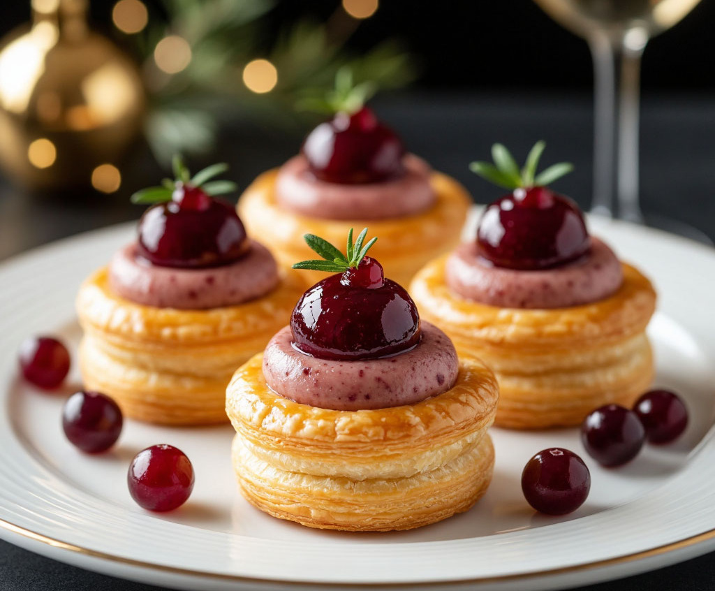 Элегантный старт праздника. Хрустящие волованы с утиным паштетом и клюквенным желе: сочетаются с игристым и вином