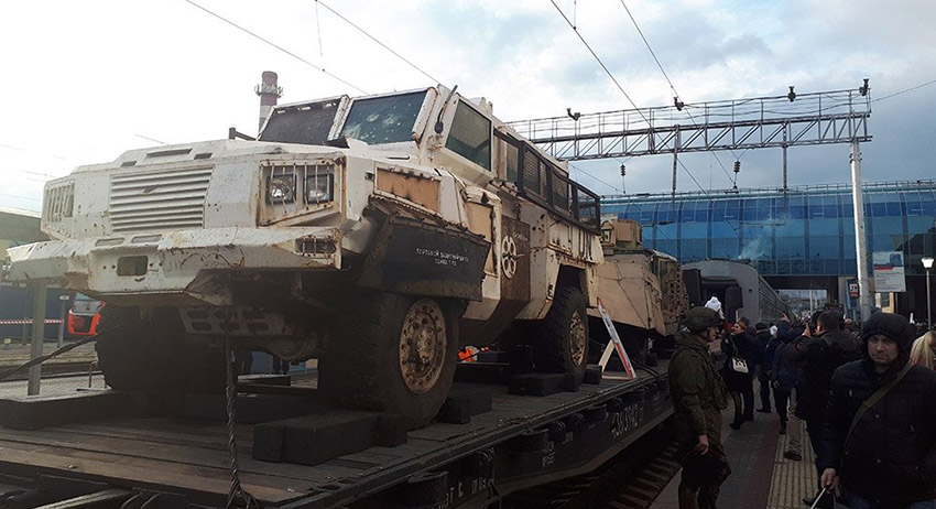 Акцию, демонстрирующую изъятые у сирийских террористов военные трофеи, проводит Минобороны России. Поезд с выставкой уже побывал в Москве, Туле, Курске, Белгороде, Ростове-на-Дону. В общей сложности ему предстоит преодолеть более 28,5 тыс. км и сделать остановки в 60 городах России.