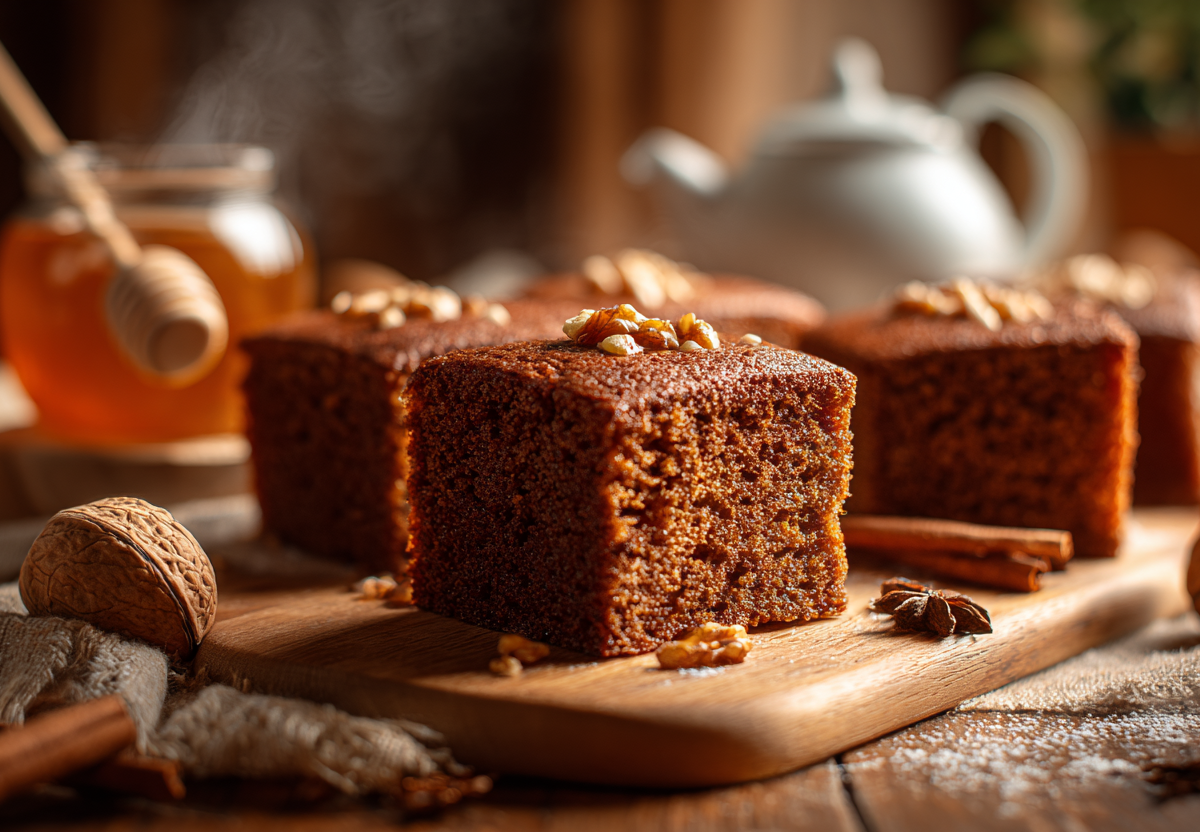 Эта коврижка пахнет детством, медом и праздником. Ее влажная плотная текстура и аромат корицы с имбирем напоминают о домашней выпечке, которую готовили наши бабушки.