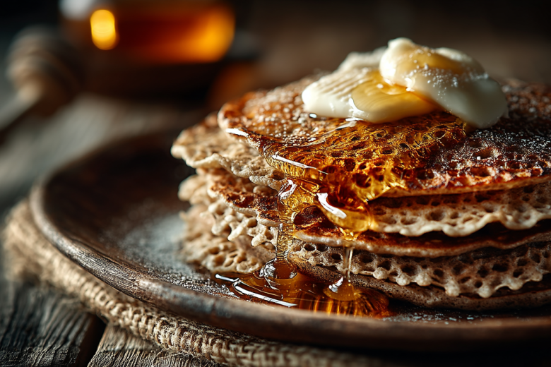 Эти блины — гениальное изобретение марокканской кухни, которое одинаково роскошно дополнит и сладкий завтрак с медом, и сытный обед с супом или рагу. Их слоеная текстура покоряет с первого раза, а процесс приготовления медитативен и прост.