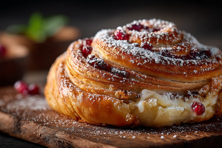 Выпекаем рогалики 10–12 минут до красивого золотистого оттенка. Готовую выпечку перекладываем на решетку, даем полностью остыть и перед подачей щедро украшаем сахарной пудрой, просеянной через ситечко.
