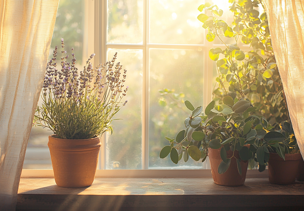 Пеларгония излучает тонкий цитрусовый аромат, лаванда успокаивает и устраняет затхлость, жасмин приятно пахнет даже без цветения. Эвкалипт и мирт насыщают комнату эфирными маслами и очищают воздух. Главное — обеспечить растениям свет и не заливать водой.