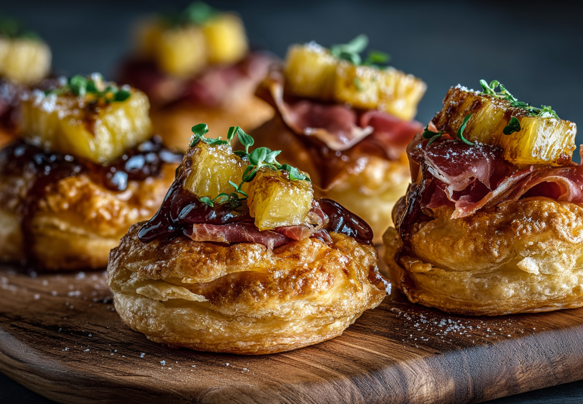 Сочетание сладкого карамелизованного ананаса, слоеного теста и соленого прошутто — это классика, которая никогда не подводит. Рецепт построен на контрастах, а процесс — на трех четких этапах, ведущих к безупречному результату.