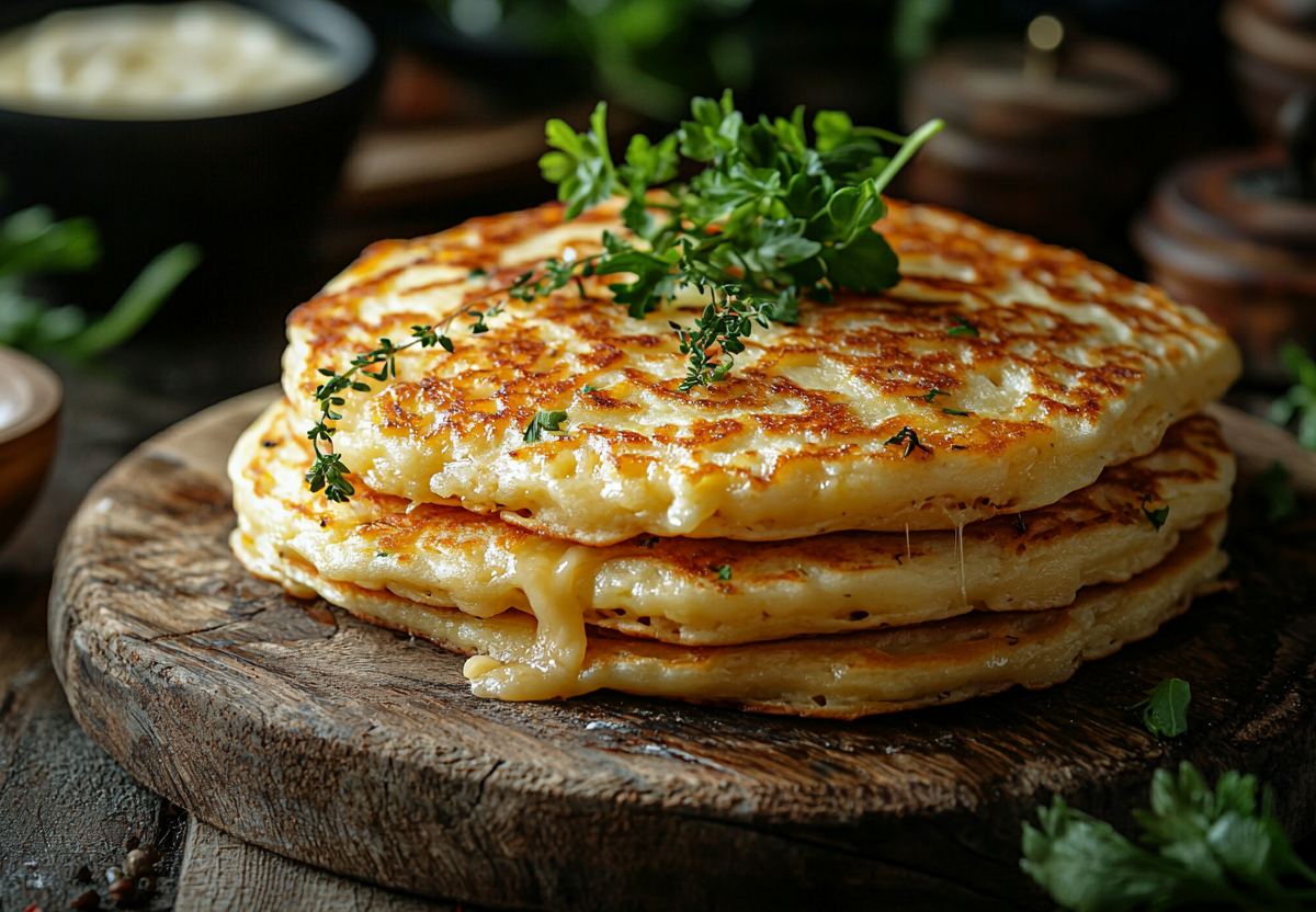 Весь секрет этих блинов в том, что сыр добавляется прямо в тесто, а не используется как начинка. При жарке он равномерно распределяется и плавится, создавая единую сырную структуру по всему блину. Подавайте такие блинчики со сметаной, и вы получите идеальный завтрак для всей семьи.