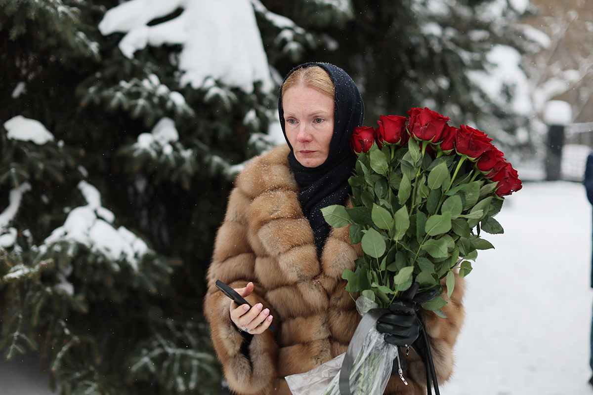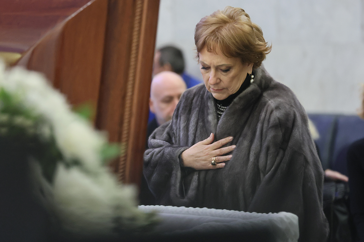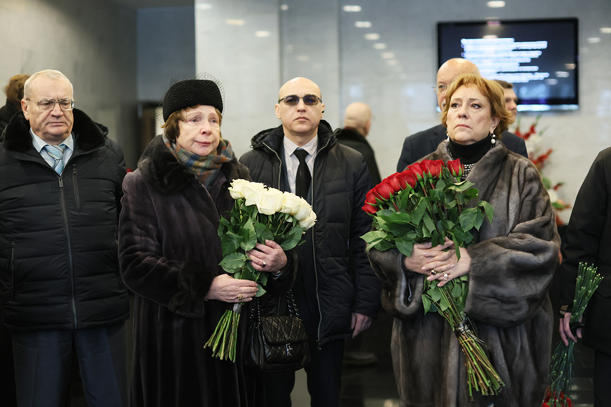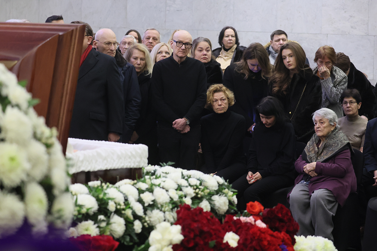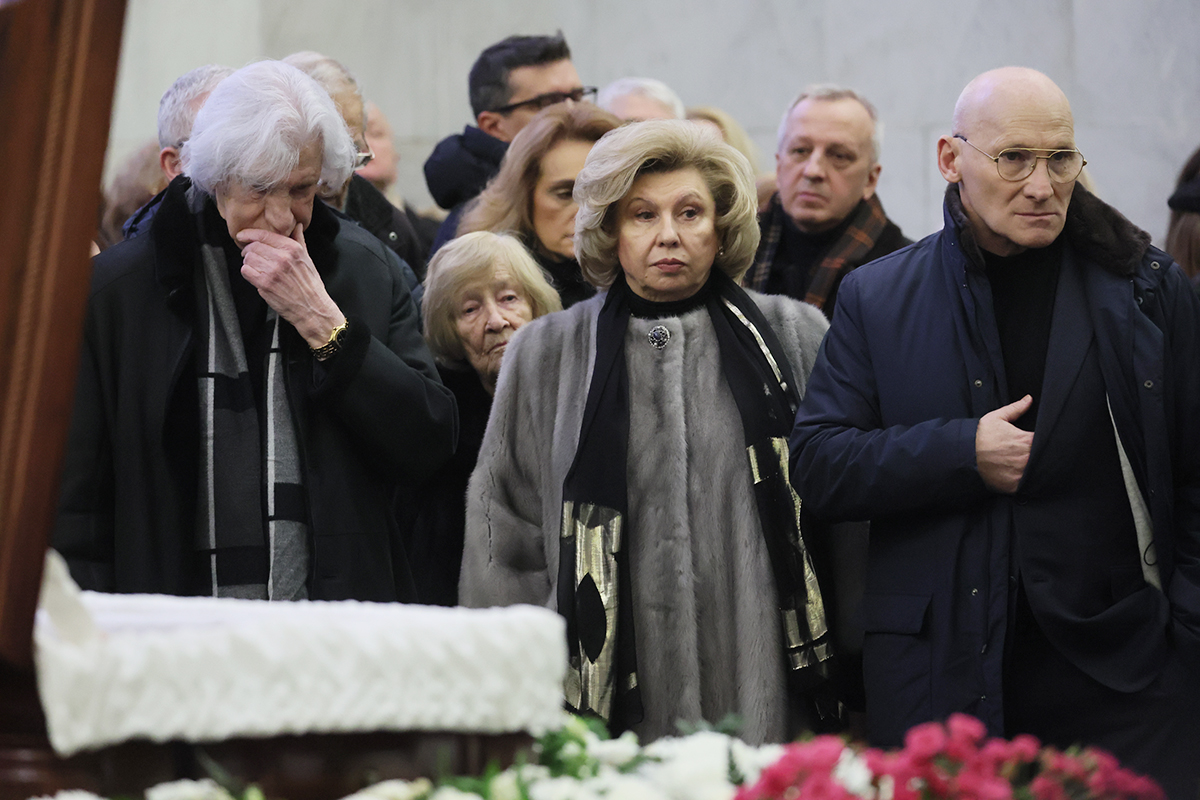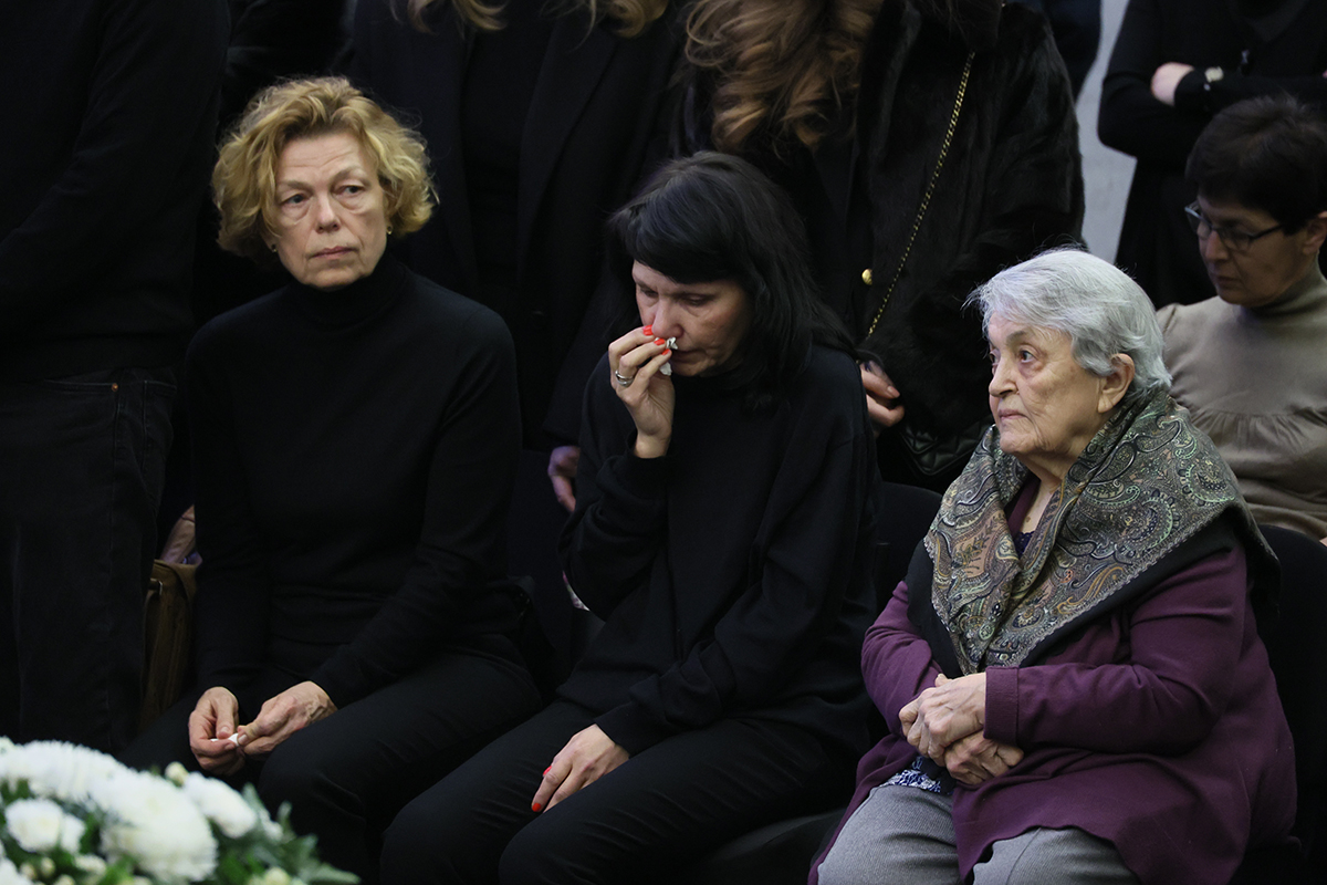 Дочь Генриха Падвы Ирина (в центре) на церемонии прощания с заслуженным юристом России Генрихом Падвой в Москве