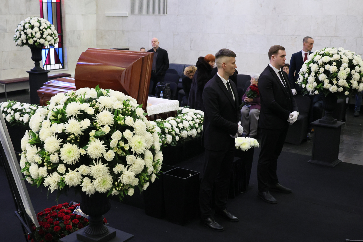 На церемонию прощания принесли огромные венки и букеты цветов. Проводить юриста в последний путь пришли министр юстиции Константин Чуйченко, федеральный омбудсмен Татьяна Москалькова, адвокаты Генри Резник и Михаил Барщевский, а также другие знаменитости.