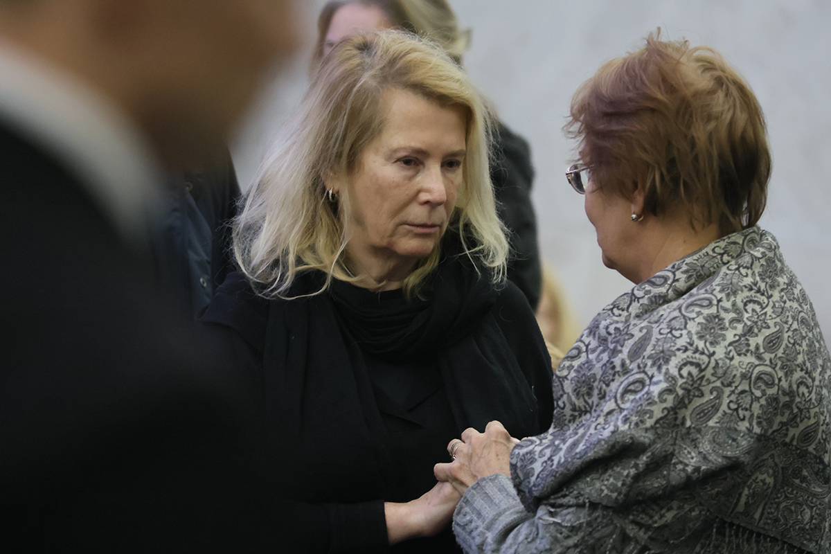 Дочь Генриха Падвы Ирина (в центре слева) и председатель Московской городской коллегии адвокатов Алла Живина на церемонии прощания с заслуженным юристом России Генрихом Падвой в Москве
