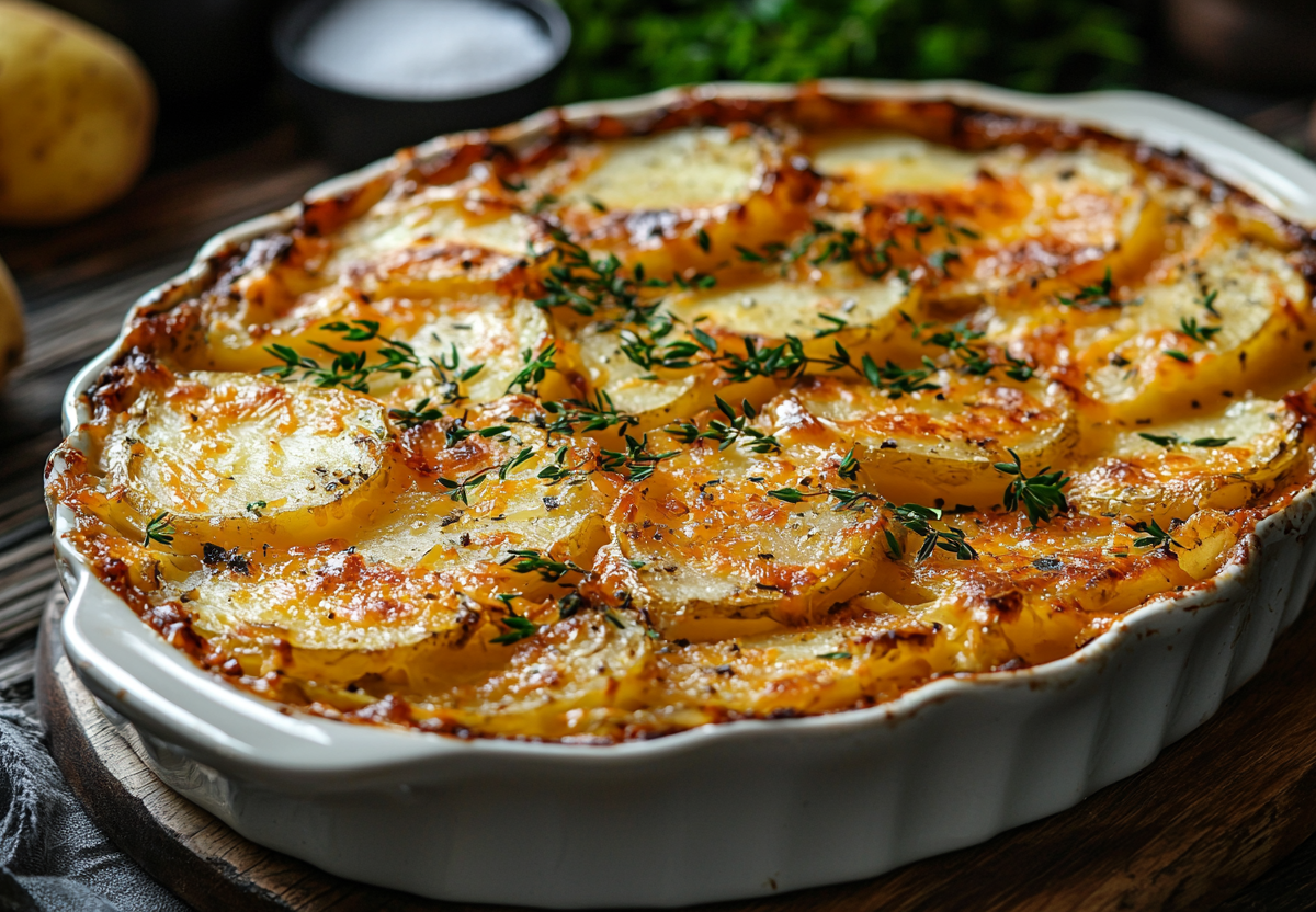 Рецепт: нарежьте 1 кг картофеля тонкими кружками, обжарьте 500 г мясного фарша с луком и морковью до готовности. В смазанную форму выложите слоями: картофель, фарш, еще картофель. Залейте смесью из 200 мл сливок, 2 яиц и специй. Посыпьте 150 г тертого сыра и запекайте при 180°C 40–50 минут до золотистой корочки.