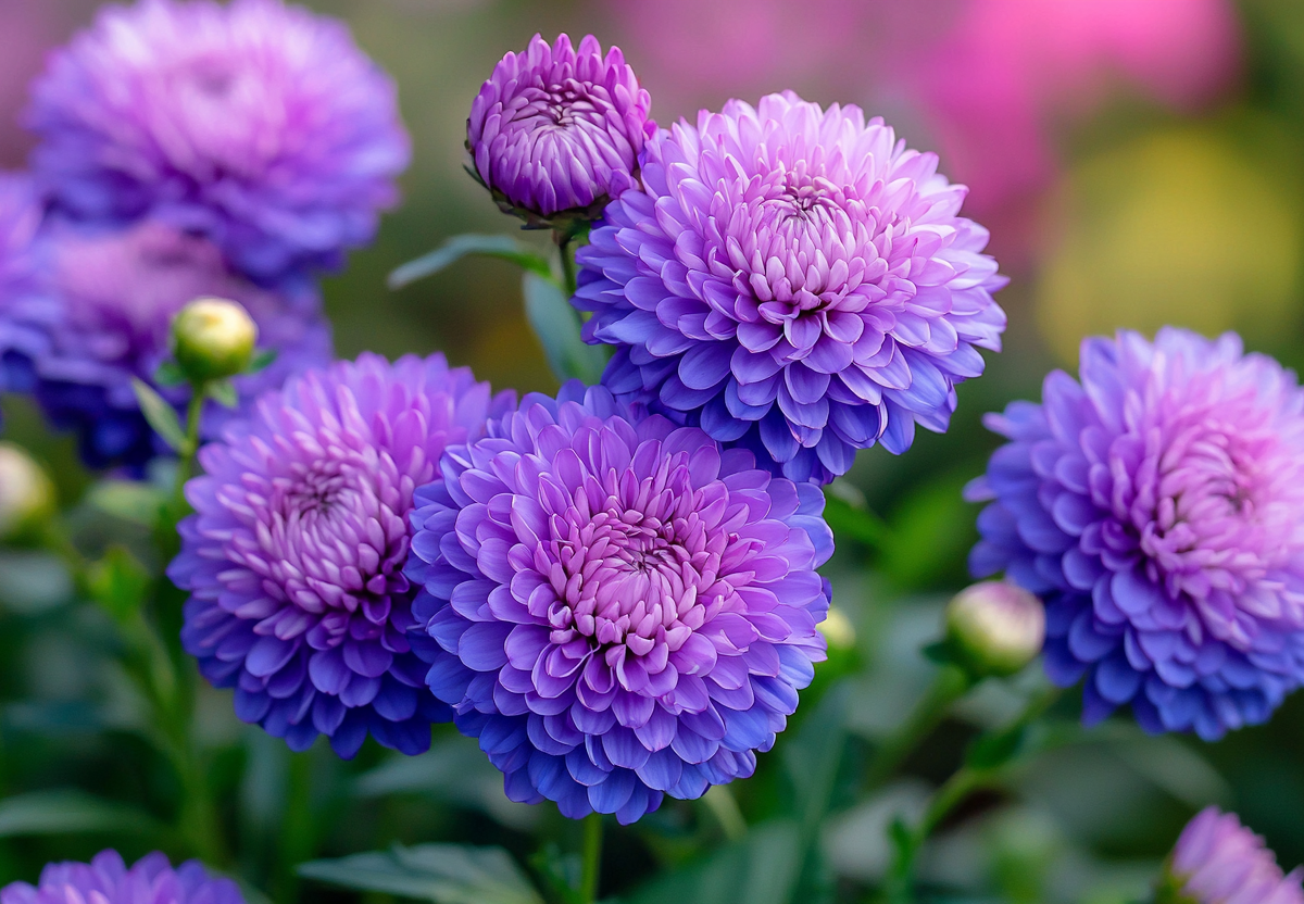 Астра Велия — это настоящая звезда осеннего сада, отличающаяся уникальной способностью создавать на одном кусте плавный переход от нежно-сиреневых к темно-сиреневым оттенкам.