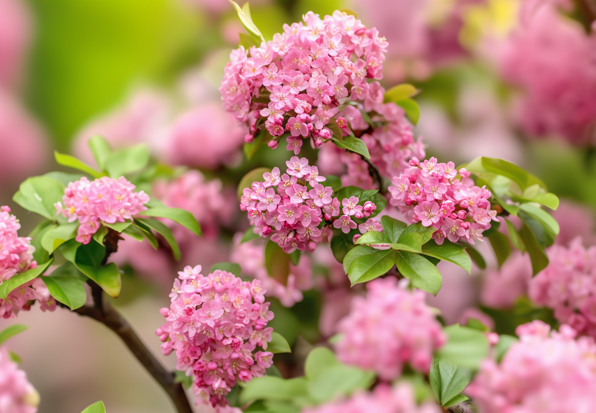 Цветение длится 2–3 недели в апреле–мае, превращая сад в сказочное зрелище. После опадания лепестков появляются декоративные листья, которые осенью становятся золотистыми.