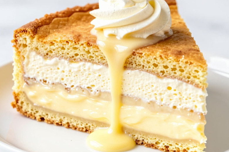 Этот нежный пирог делится на три слоя при выпечке — получается вкуснее чизкейка. Ароматная слоистая сказка