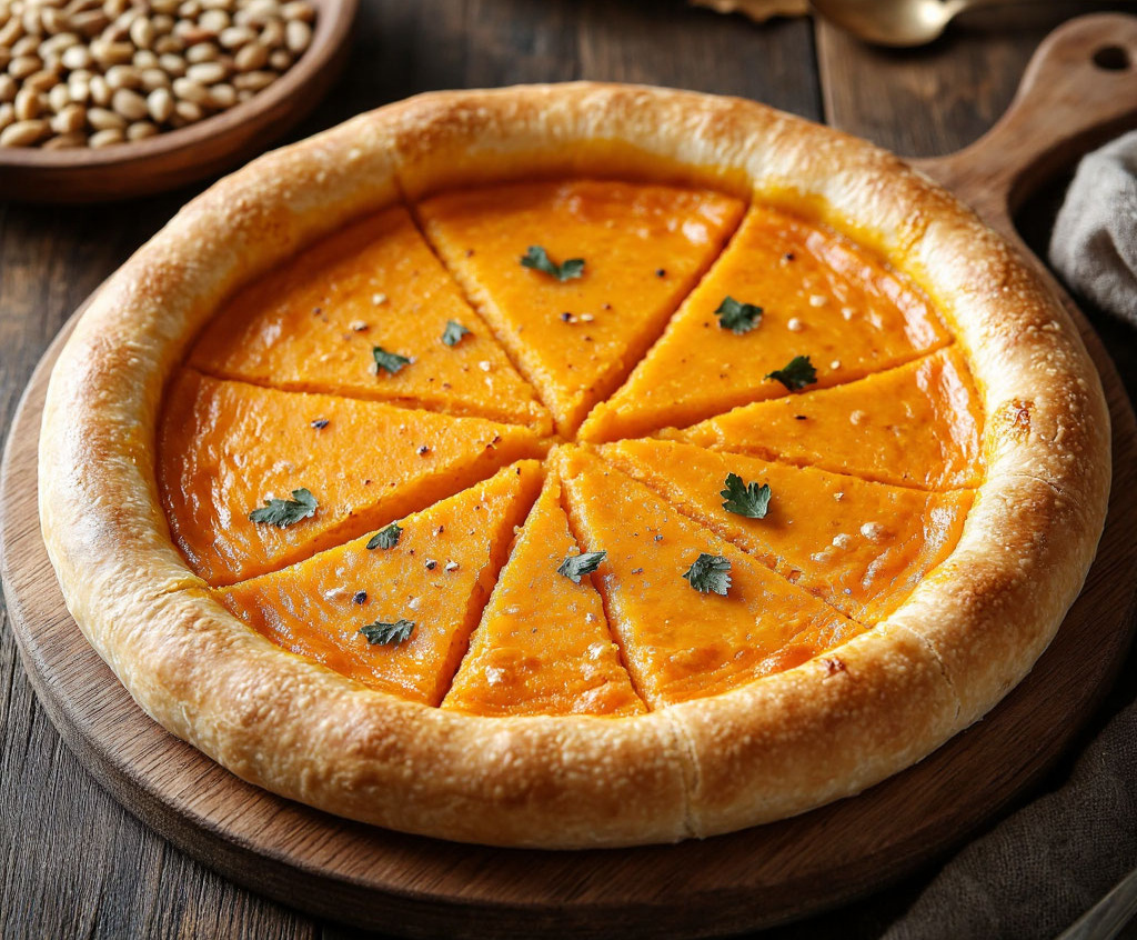 Представьте себе: тончайший, почти прозрачный слой теста, скрывающий бархатную сладкую начинку из запеченной тыквы с легкими пряными нотками. Этот осетинский пирог — идеальный баланс простоты и изысканности, где гармоничное сочетание нежности тыквы и эластичного теста создает удивительный вкус. Пирог станет ярким акцентом на любом столе, даря тепло и солнечное настроение даже в хмурый день.