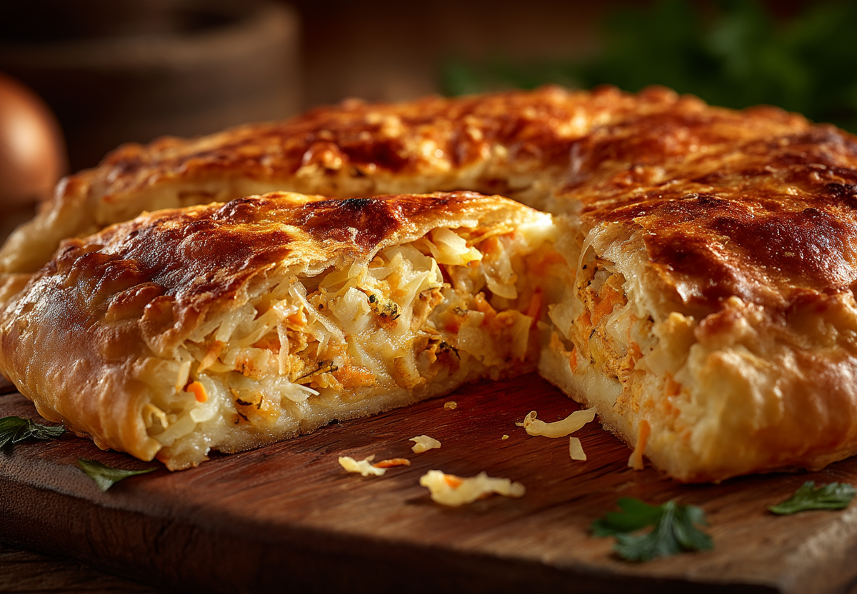Осетинская кухня славится своими сытными пирогами, но этот рецепт доказывает, что даже постный вариант может быть невероятно насыщенным. Нежное дрожжевое тесто и сочная тушеная капуста с морковью создают гармонию вкуса, которая ничуть не уступает классическим начинкам.