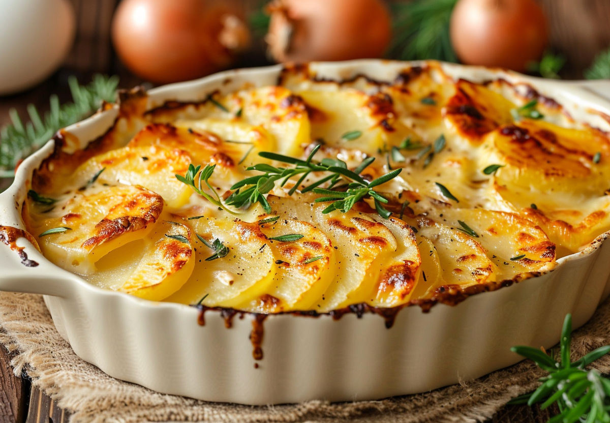 Вам понадобится: 2 куриные грудки, 4 картофелины, 150 г твердого сыра, 200 мл сливок, 1 яйцо, 1 луковица, соль, перец, прованские травы. Картофель очистите и нарежьте тонкими кружочками. Куриные грудки нарежьте пластинами, отбейте. Лук нарежьте полукольцами. Форму смажьте маслом. Выложите слоями: картофель, лук, курицу. Посолите, поперчите, посыпьте травами. Сливки смешайте с яйцом, залейте запеканку. Посыпьте тертым сыром. Запекайте 40–45 минут при 180 °C до золотистой корочки.