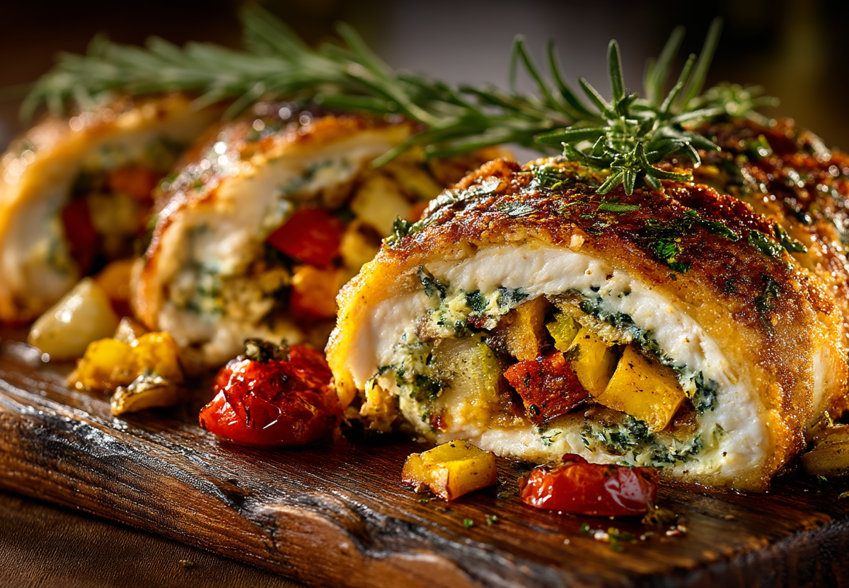 Этот рулет — то самое блюдо, которое заставляет гостей замереть в ожидании первого кусочка. За хрустящей аппетитной корочкой скрывается сочный рыбный фарш и яркая слоеная начинка из обжаренных овощей.