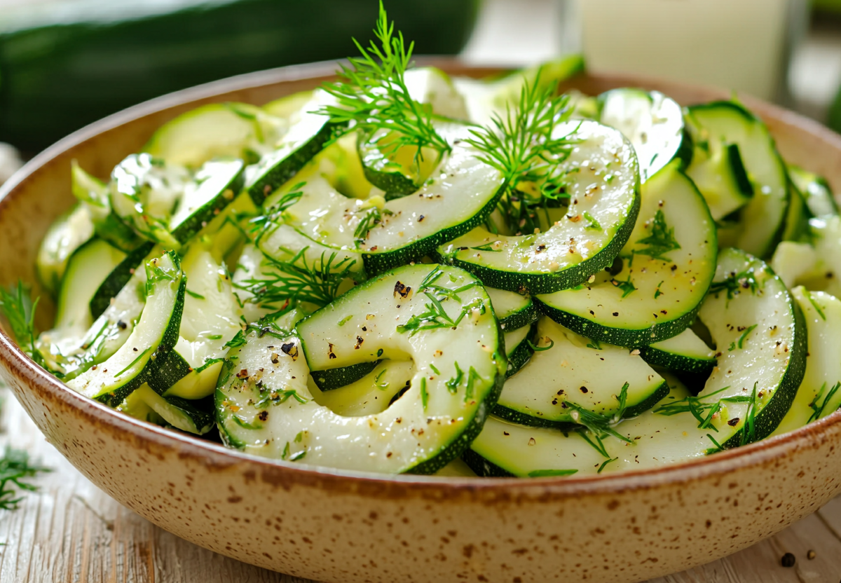 Этот салат хорош тем, что кабачки остаются хрустящими, а заправка придает им нежный сливочный вкус с пикантными нотками чеснока и трав. Подавать можно как самостоятельное блюдо или как легкий гарнир к мясу. Попробуйте — и вы удивитесь, насколько вкусными могут быть обычные сырые кабачки! Особенно хорош этот салат в жару — освежает и дарит ощущение легкости.
