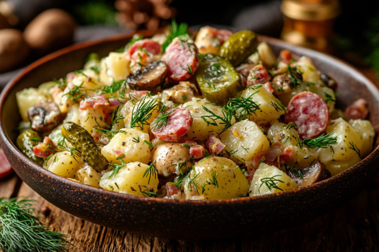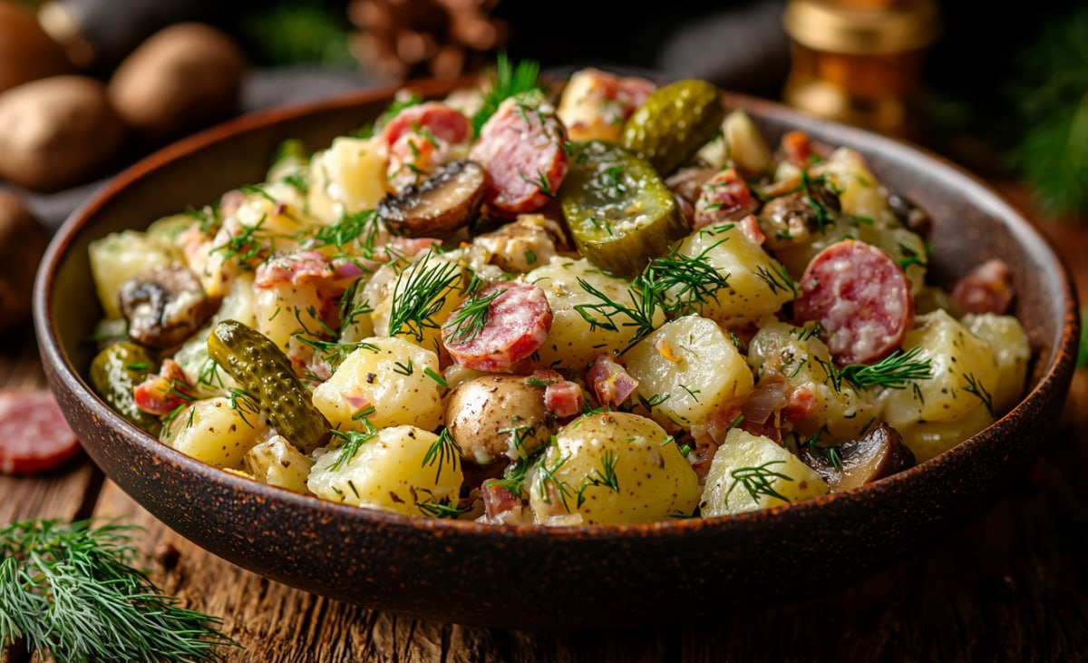 Сытный салат с сосисками и картошкой — это полноценный обед, который готовится за 15 минут и не требует ни гарнира, ни хлеба. Его оценят и мужчины, и женщины, и дети.