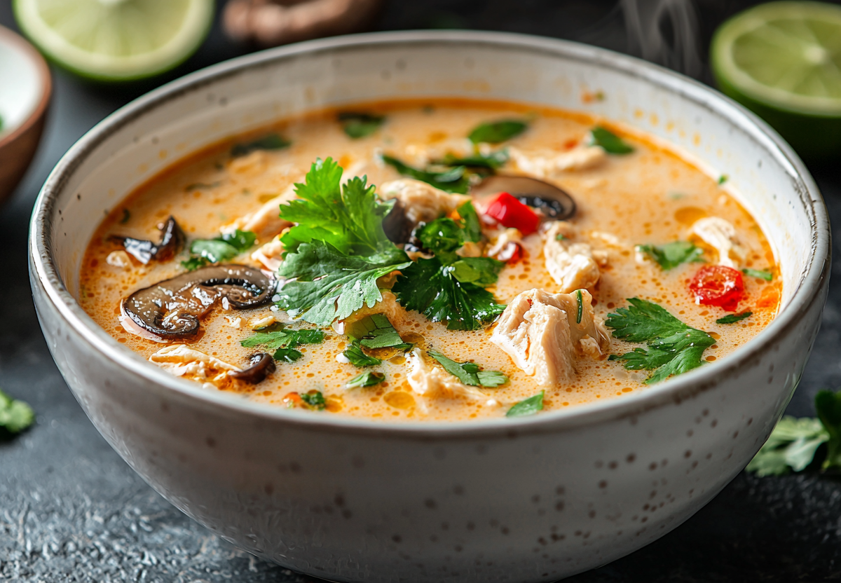 Том-кха-кай — знаменитый тайский суп с нежным куриным мясом в сливочно-кокосовом бульоне. Идеальный баланс остроты, кислинки и насыщенного вкуса. Готовится быстро, а результат впечатляет.