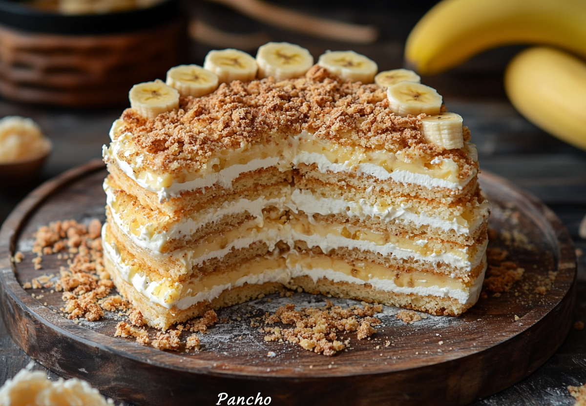Банановый торт «Панчо» — это тот десерт, который способен украсить любой праздник и стать главным угощением вечера. Его главная особенность — необычная форма: торт собирается из двух коржей, разрезанных на треугольники, которые выкладываются в хаотичном порядке и пропитываются нежным кремом. В результате получается эффектный десерт с мозаичной структурой, где в каждом кусочке сочетаются влажный бисквит, сладкие бананы и воздушный крем на сметанной основе. Этот торт не требует сложных ингредиентов или профессиональных навыков, но неизменно вызывает восторг у тех, кто его пробует.