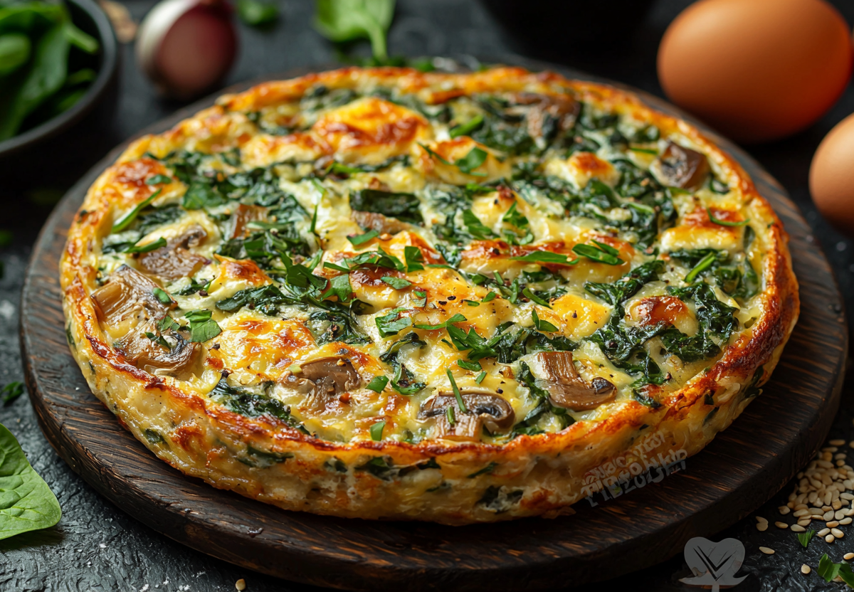 Подготовленную форму для запекания смазываем. Выливаем в нее половину творожного теста. Затем равномерно распределяем обжаренные грибы со шпинатом и заливаем оставшимся тестом. Посыпаем верх семенами кунжута и льна.