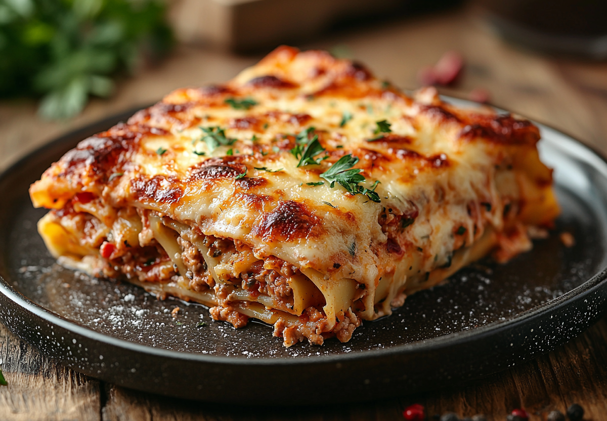 Подавайте сразу, украсив базиликом, — это блюдо перенесет вас в солнечную Италию. Вкус каннеллони — это гармония сочной мясной начинки со сливочно-сырным соусом, который запекается золотистой корочкой.